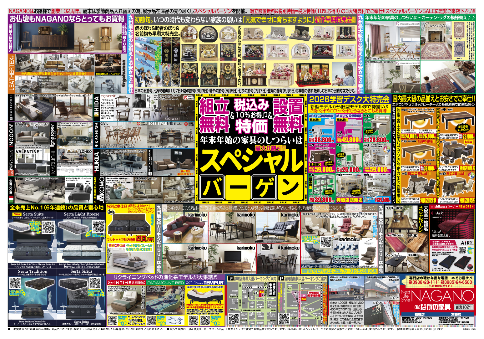 年末年始の家具のしつらいは、最大8割引きスペシャルバーゲン開催【チラシ表面】