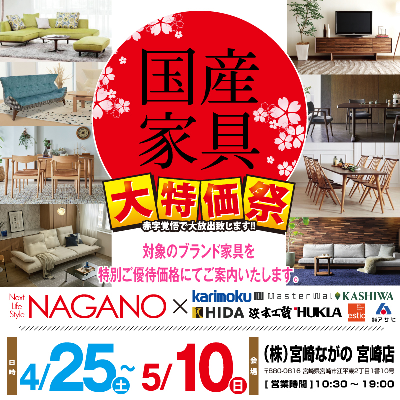ながの家具 宮崎店にて、特別イベント!全国有名産地の国産家具を特別優待価格でご案内!2026国産家具フェアを開催!