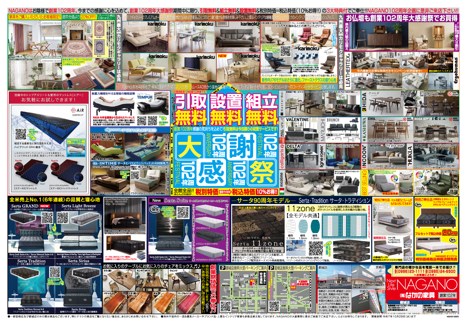 ながの家具では、創業102周年!大感謝祭を開催いたします!