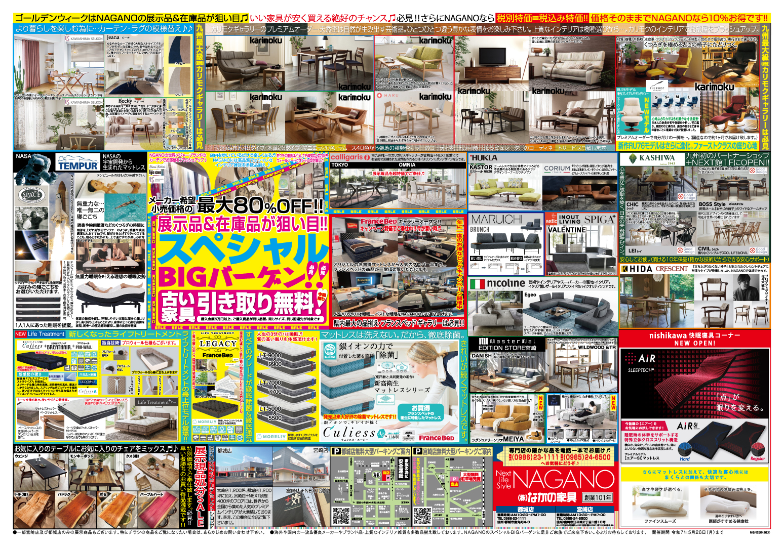 ゴールデンウィークは、ぜひお近くのながの家具へ!