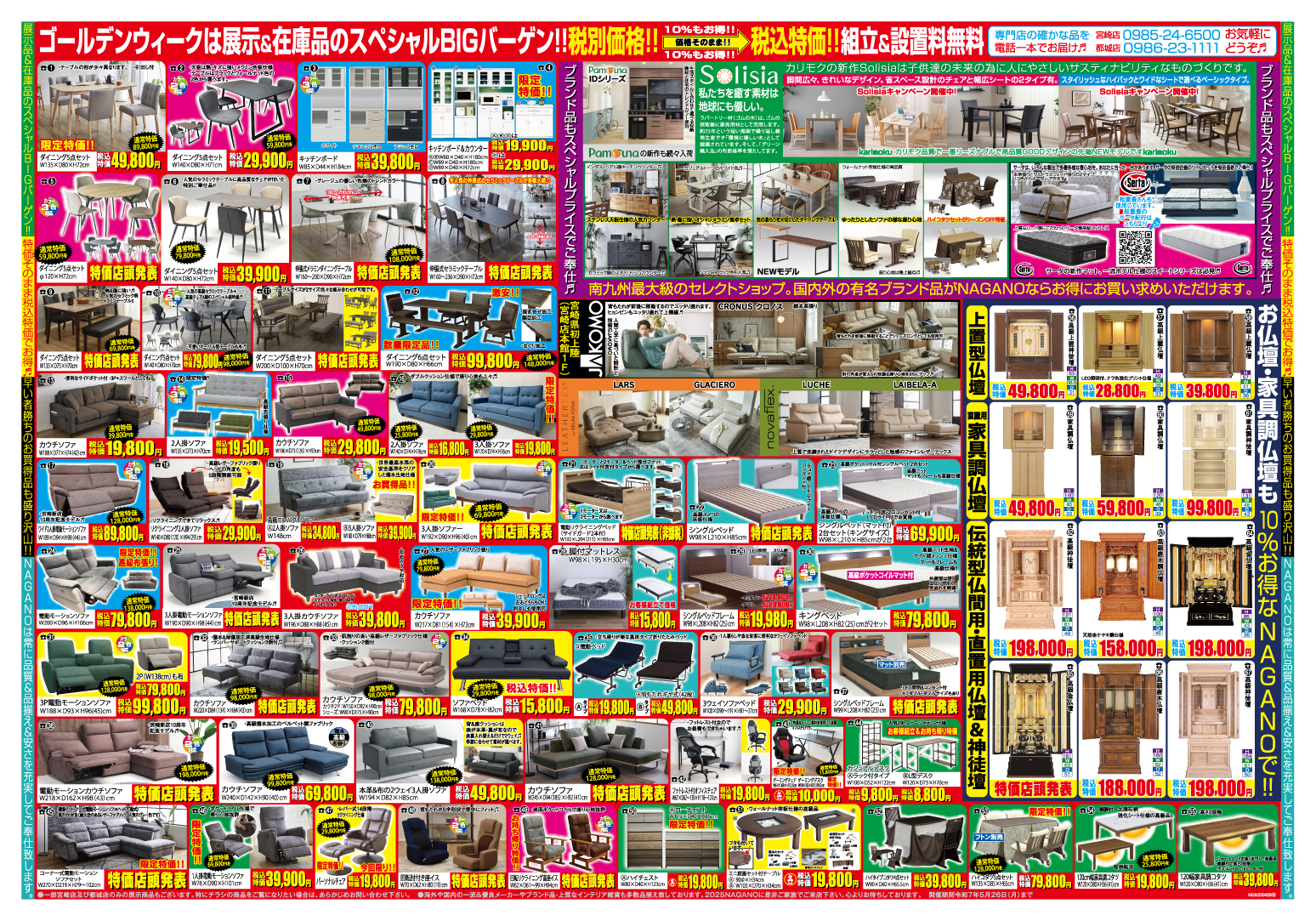ゴールデンウィークは、ながの家具の展示品・在庫品が断然おトク!